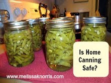Home canning is safe and quite enjoyable. Our entire family helps and my children have helped plant, weed, pick, snap, and can our beans since they could walk. For a more thorough tutorial on home canning visit my Beginners Guide-Canning 101 Water Bath vs. Pressure Canning.
