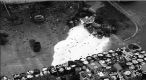 In the middle of the night, an incoming train, planning to pass the town, collided with that parked train, which contained chlorine gas, sodium hydroxide, and cresol. The collision derailed both locomotives and many freight cars. The parked train’s tank car, containing ninety tons of chlorine, ruptured and then released sixty tons of the gas, creating a haz-mat spill and also polluting a nearby creek.