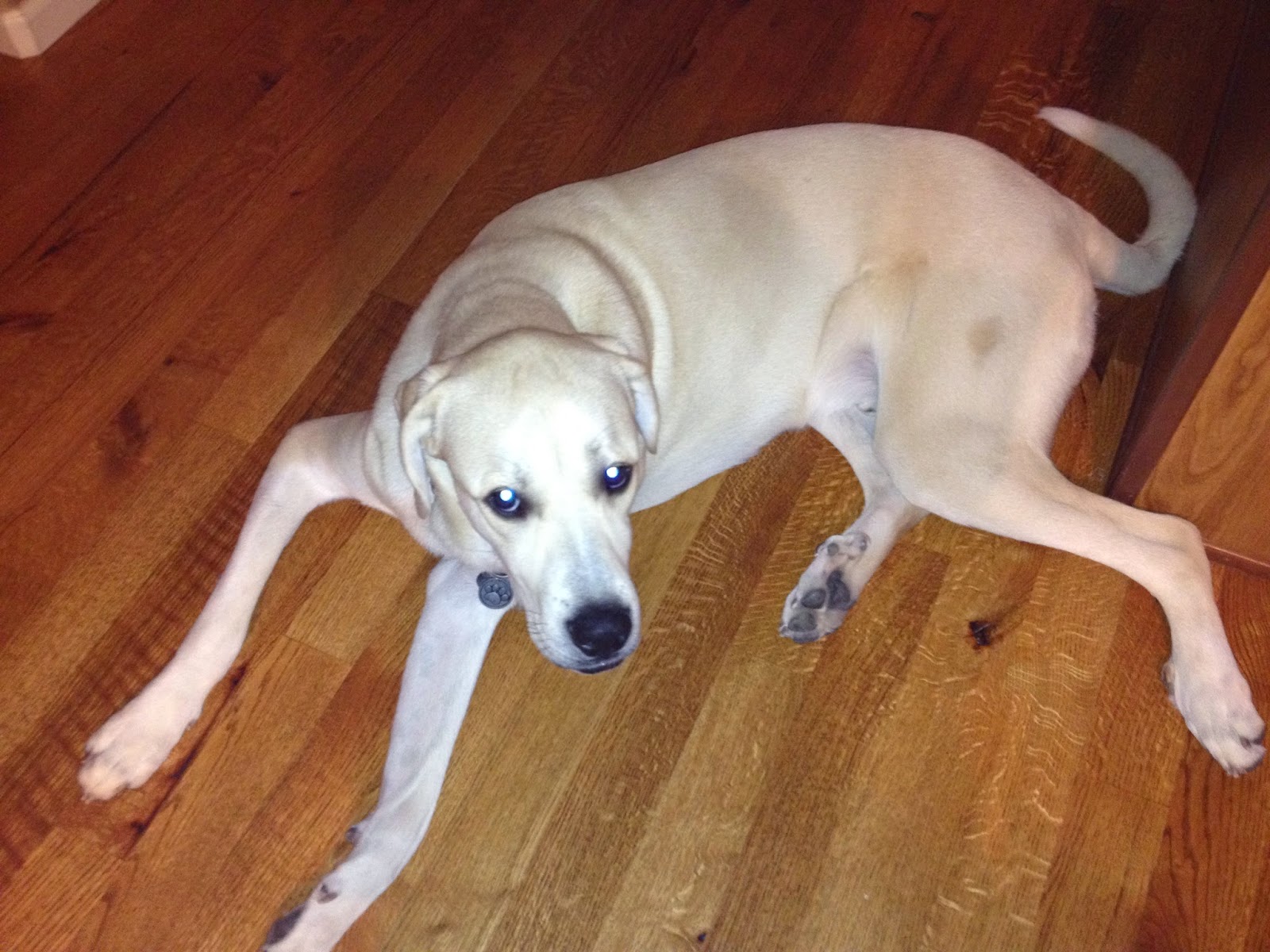 I comb through his coat with my fingers and there isn’t a cut underneath. How else would a dog get blood on his coat in that area? We’re used to asking ourselves this with kids– because kids may not always be developmentally able or willing to tell us.